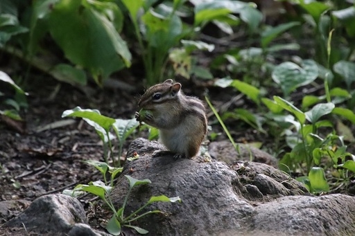 エンレイソウに少々同情しつつ、食い意地を張り続けるシマリスの愛くるしい姿に癒されたひとときでした。