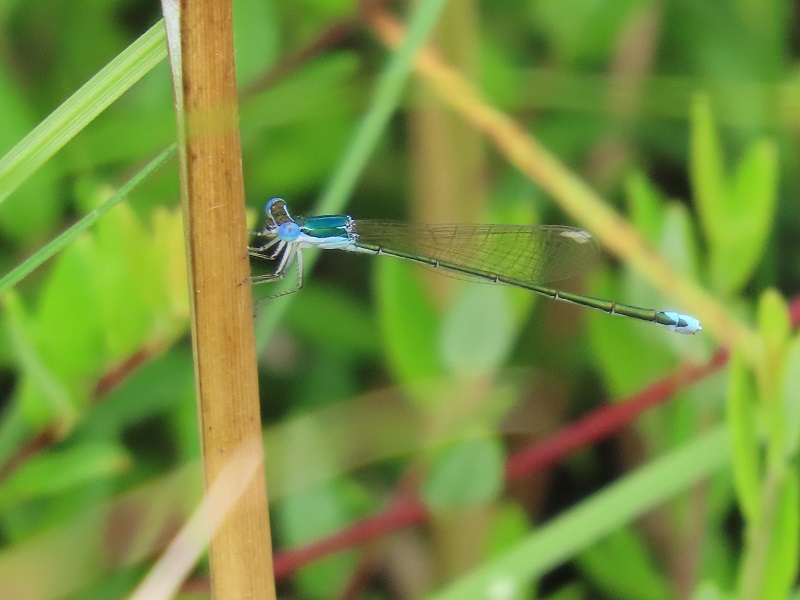カラカネイトトンボ(Nehalennia speciosa)という名前がつけられたこのトンボは氷河期の遺存種(いぞんしゅ)と言われ、サロベツ湿原が成立したといわれる1 万年前から湿原とともに生きてきたのです。ガラス細工のような光沢のある金属色の身体に瑠璃色の目はまるで宝石のよう。この小さな生き物もずっと昔からサロベツ湿原の立派な一員なのです。