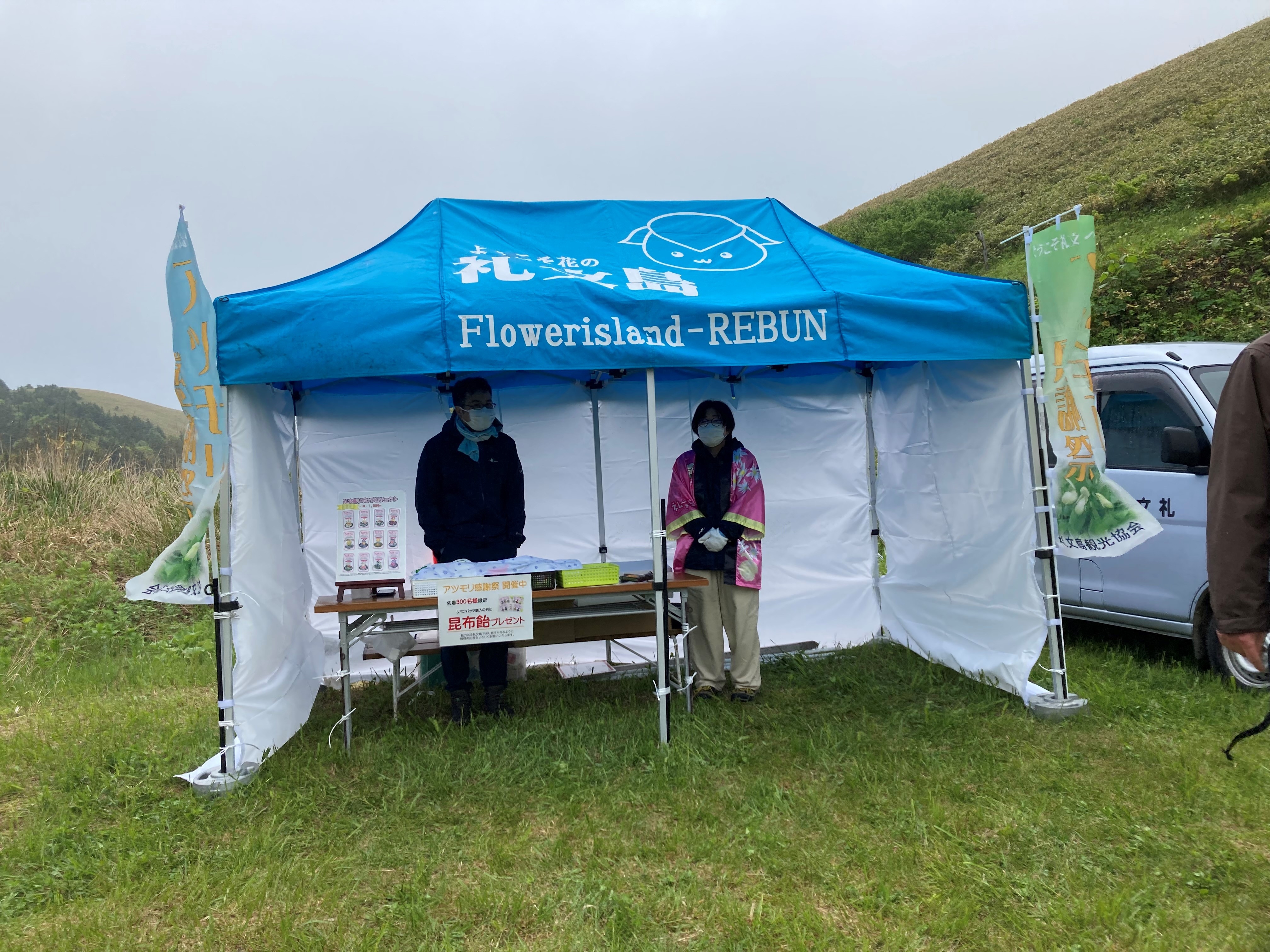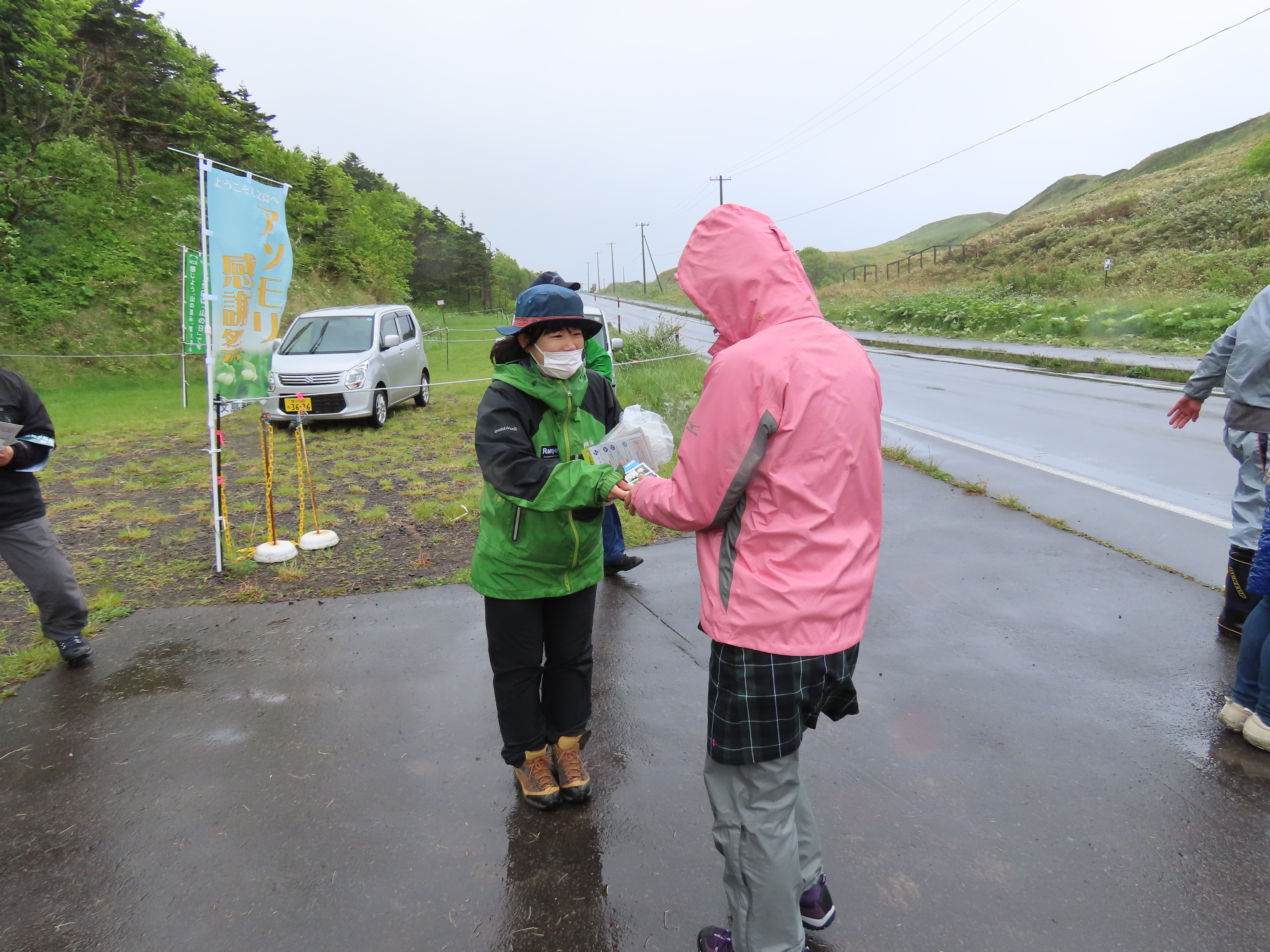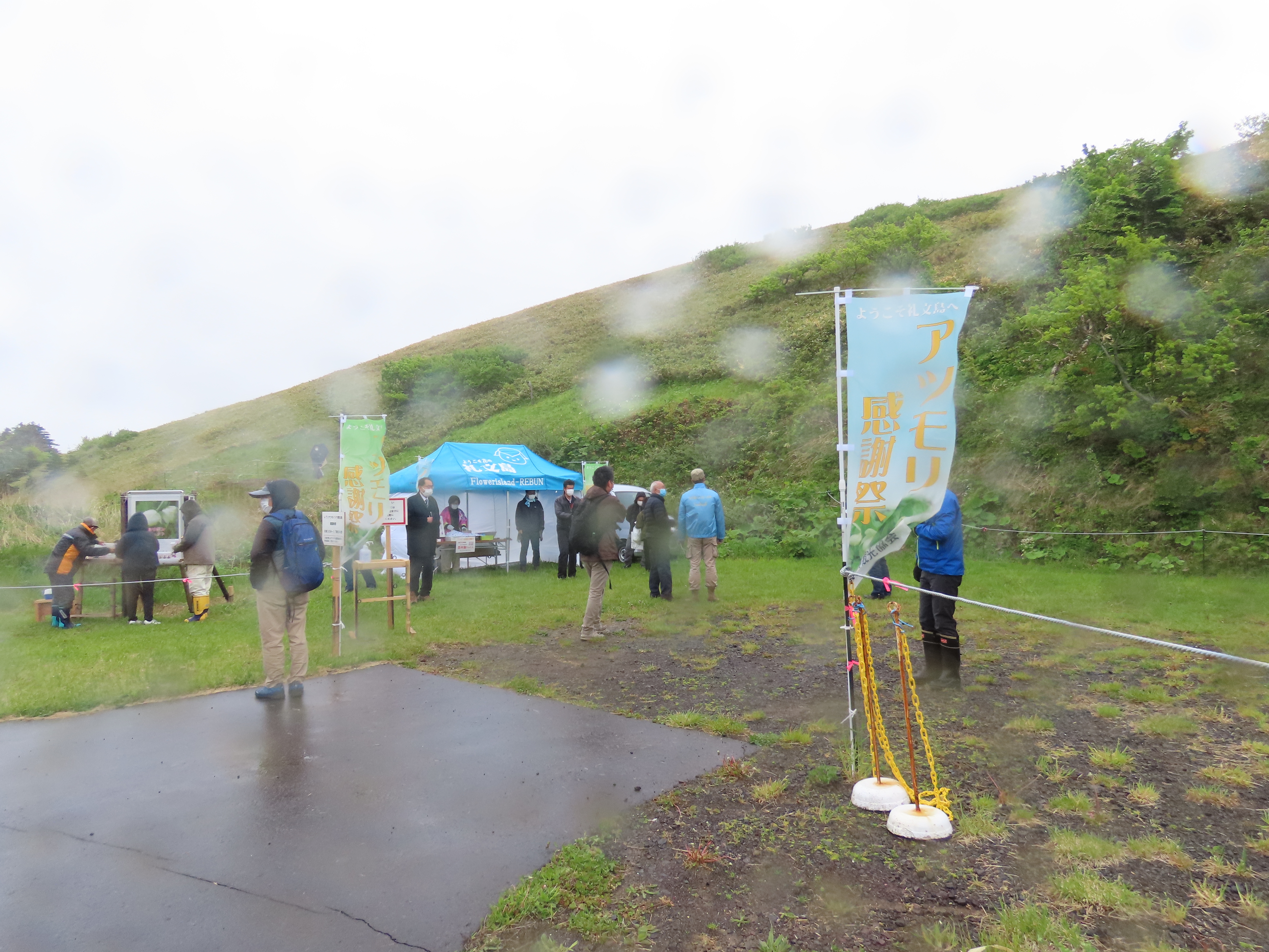 6月3日にレブンアツモリソウ群生地で2年ぶりにレブンアツモリソウ感謝祭が行われました。当日は雨が降り、風も冷たく、寒い中での開催となりましたが、多くの観光客が訪れました。