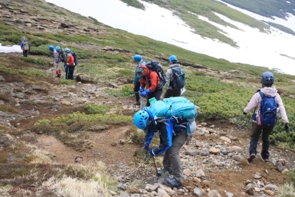 先日、パークボランティアのみなさんと山開きに向けて十勝岳周辺の登山道整備に行ってきました。
