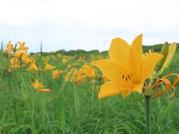 エゾカンゾウはゼンテイカやニッコウキスゲとも呼ばれ、学名はHemerocallis middendorffii、「Hemerocalliss」はラテン語から「一日の美しさ」を意味します。その意味の通り「一日花」で、朝方に開花し夕方にはしぼんでしまうと言われています。