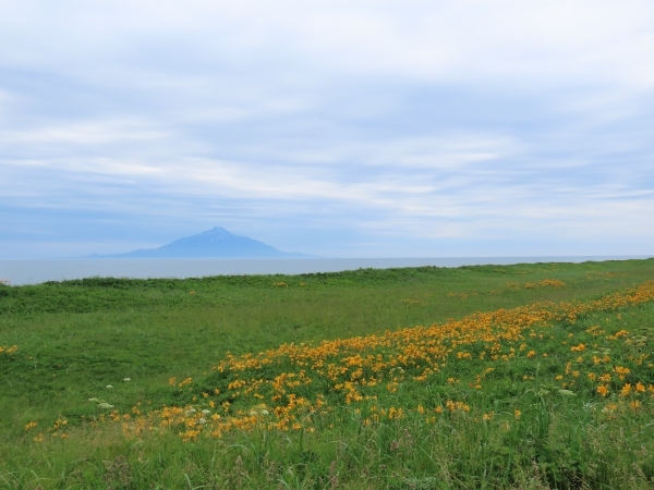 日本海オロロンラインも利尻山を背景に、エゾカンゾウで色鮮やかになりました。