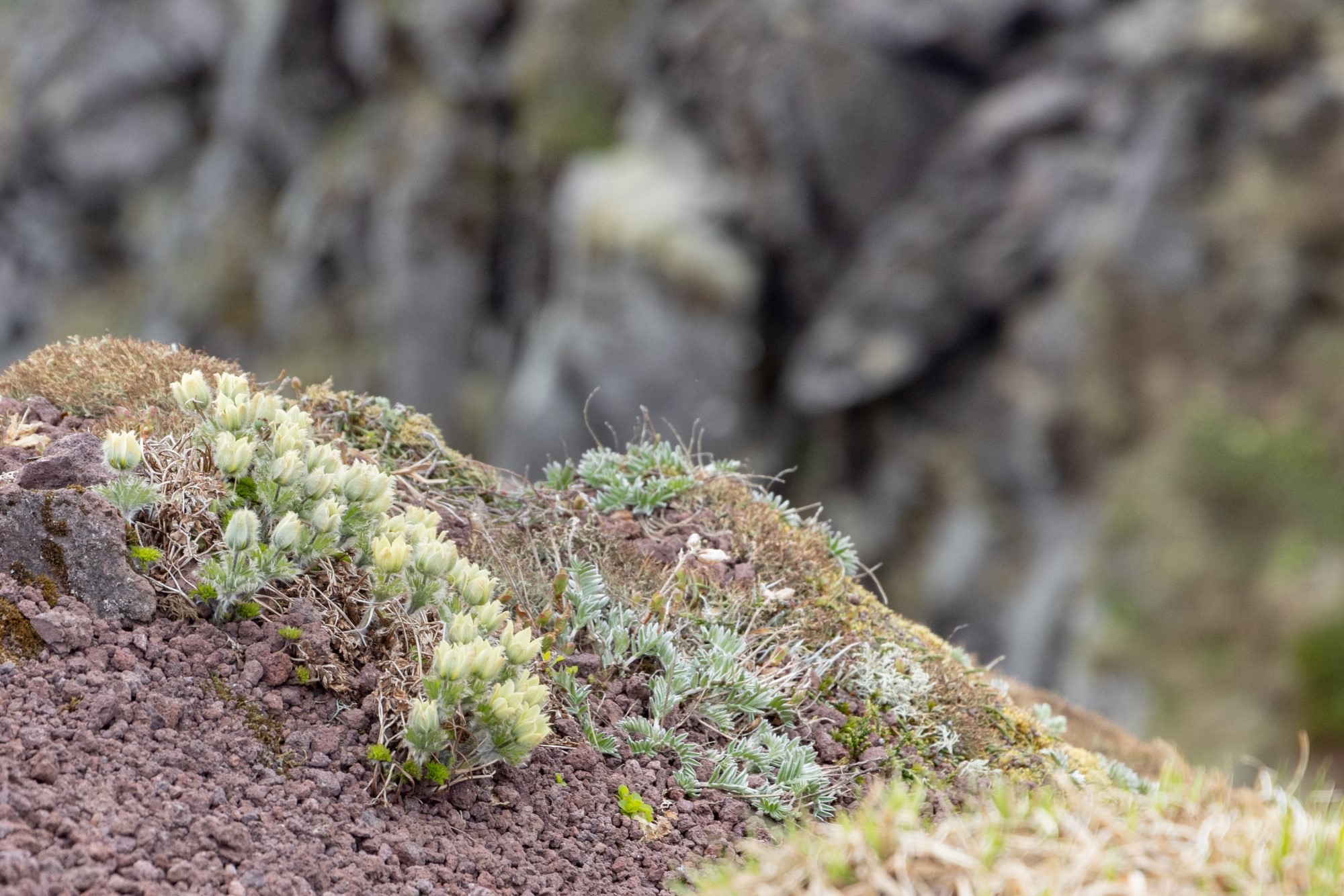 風に揺れるツクモグサ