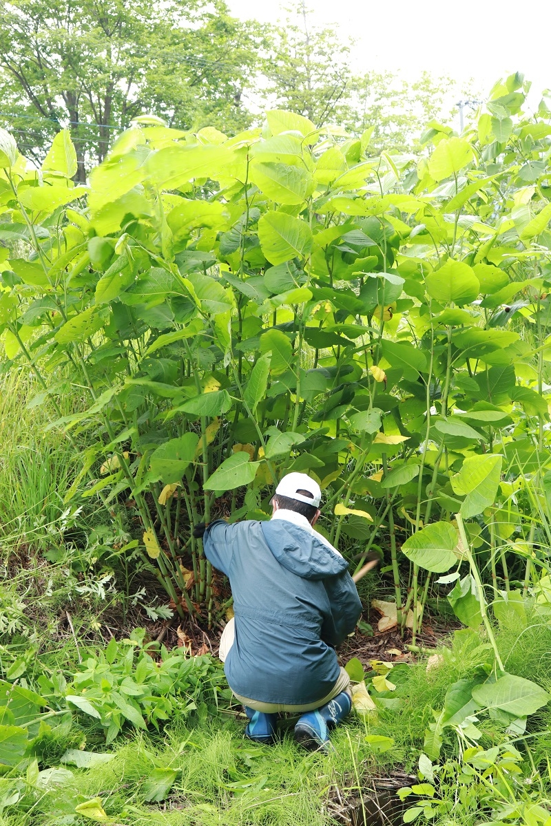 背丈より高く成長したオオイタドリを刈ると・・・
