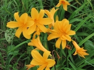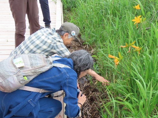 木道に出て少し歩くと、エゾカンゾウやカキツバタが私たちをお出迎え。
