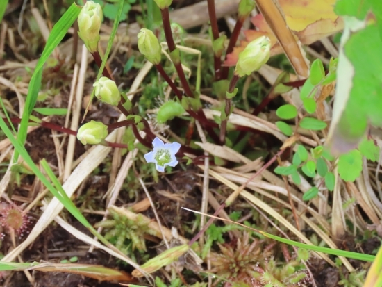 さらに進んでよく観察していると、季節外れのタテヤマリンドウが1輪だけ小さく咲いていました。