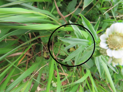 写真を拡大(黒丸部分)すると、小さな切れ込みが多数あることが分かり、ノコギリの名前がついたことが納得できます。