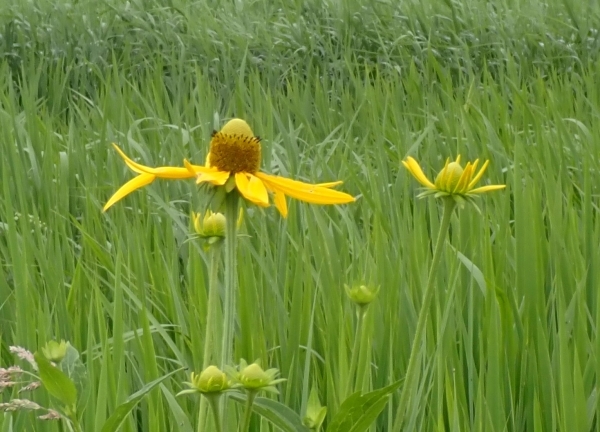 毎年夏になると、沼周辺を黄色く彩っているオオハンゴンソウ。