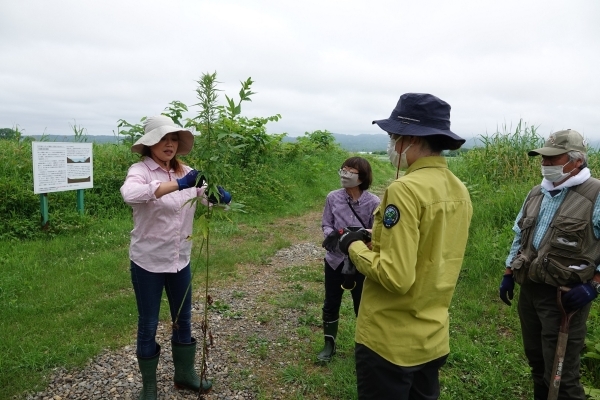 宮島沼を本来の姿に戻していきたいという思いで、宮島沼水鳥・湿地センターの職員の方と宮島沼鳥獣保護区管理員さんが、少しずつ駆除していると聞いて、7月13日に保護官たちと一緒に作業してきました。