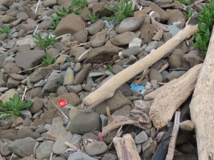 湾内では流れ着いた小さなプラスチック(ペットボトルの蓋や箱の破片など)ゴミが目立ちました。さらに、発砲スチロールや、ロープも落ちていて、特にロープは石と石の間に挟まり1本1本回収するのに時間がかかりました。毎年多くの人が訪れるこの場所にゴミが流れ着いていること、私たちが普段出しているゴミで景観が損なわれることにすごく切ない気持ちになりました。