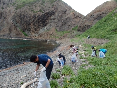 一見、海が広がって綺麗に見える場所で、海岸に降りるとたくさんのゴミが広がっていました。そのため、礼文島観光協会の呼びかけにより、清掃活動が行われました。