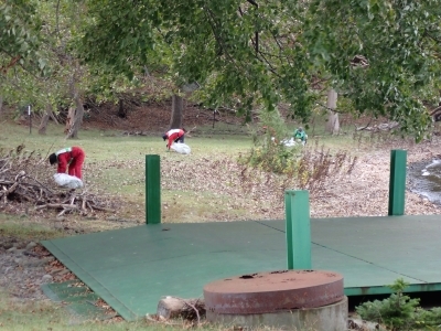 アメリカオニアザミはとても鋭いトゲがたくさんあるため、持参した手袋に加えて、ゴム手袋や革手袋をつけて、スコップや移植ごて、火ばさみなどの道具を持って作業に取りかかりました。