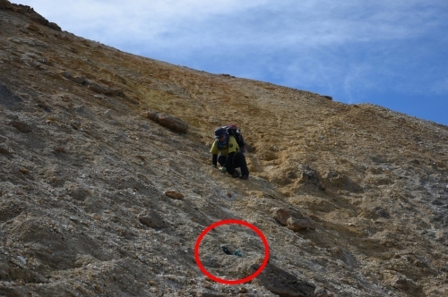 それは、巡視で愛別岳へ行った時のことです。愛別岳分岐から愛別岳方面に下りる急斜面に