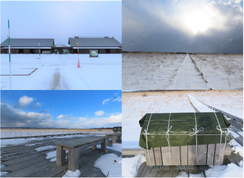 風雪による劣化を防ぐ目的で看板の冬囲いや木道の様子などを確認するため、積雪後のサロベツを巡視してきました!