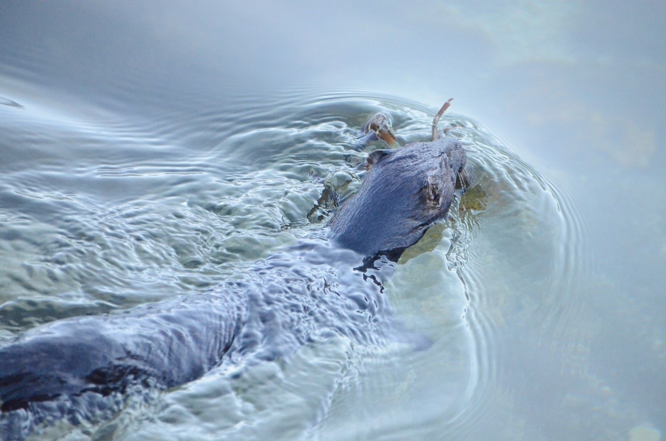 冬も凍結しない場所)付近で写真を撮っていたところ、黒い小動物が走ってきました。