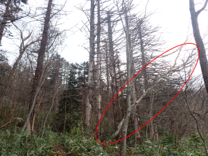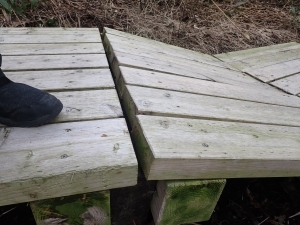 ぐるりと木道を巡視してみると倒れかかっている木や木道の傾きなどが見られました。