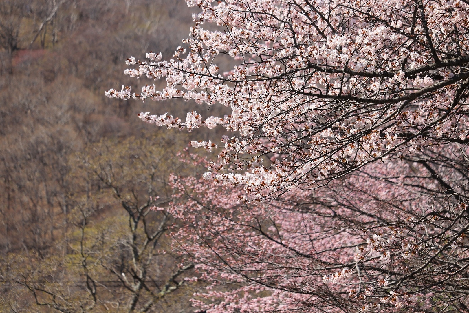 3月下旬までは雪で真っ白だった山肌は、この陽気で雪解けが進み、地面の黒色が多く見られるようになりました。