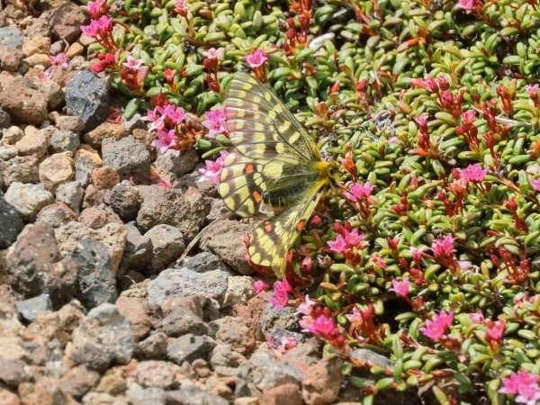 6月の高山蝶パトロールを行った際に、ミネズオウの蜜を吸うウスバキチョウの姿を観察することができました。