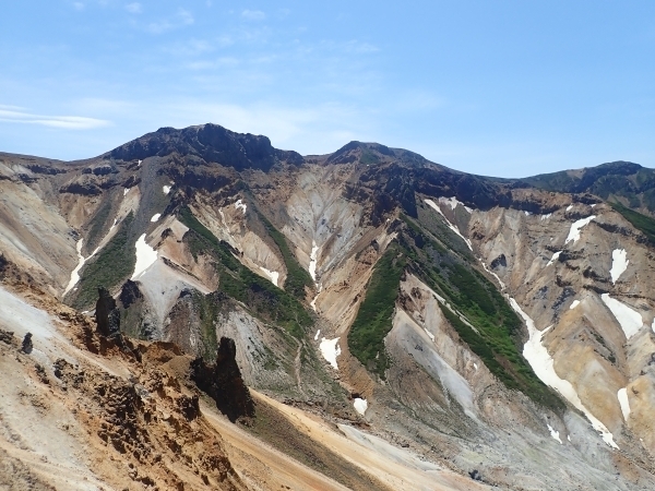 地肌むきだしの荒々しい岩壁、浸食で深く切れ込んだ谷、点在する奇岩、太古の噴火活動の激しさを物語る“上ホロカメットク山”は、十勝岳の南隣にある山です。 日本と思えないようなダイナミックな風景、名前のとっつきにくさとは裏腹に、上富良野町の十勝岳温泉登山口からおよそ2時間半で頂上に達することができます。反対側の南東斜面には高山植物がところせましと咲き、十勝岳や富良野岳への縦走もできるので、通称「カミホロ」として多くの大雪山ファンに人気があります。 大雪山国立公園の中でも、ここまで迫力ある山岳景観は“カミホロ”でしか見られません。いつ来ても、何度登っても、清々しさを感じさせてくれる大好きな山です。