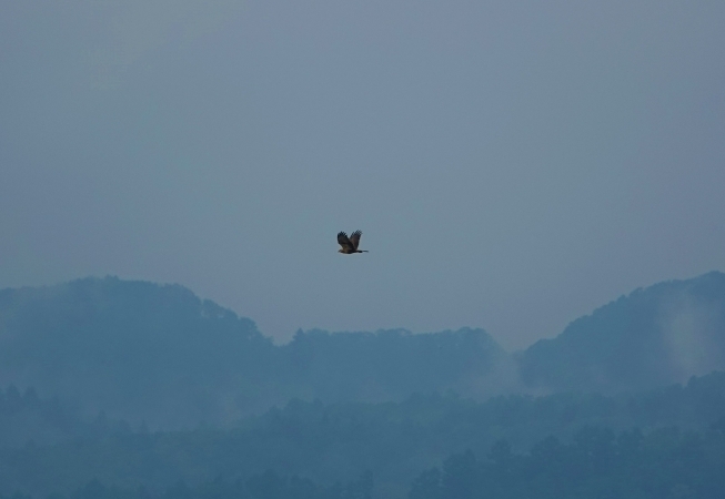 宮島沼に渡り鳥が集まり始める少し前、静かな沼の対岸上空をチュウヒが綺麗なV字翼で飛翔する勇姿を見せてくれました。チュウヒは、草原や湿地、ヨシなどに生息し、狩りの際には草原の上を低く飛び、主にネズミ類を捕らえて食べます。霧が立ちこめる沼の上を静かに飛んでいる姿は一瞬時が止まったかのように、チュウヒの放つ空気感が宮島沼を支配していました。