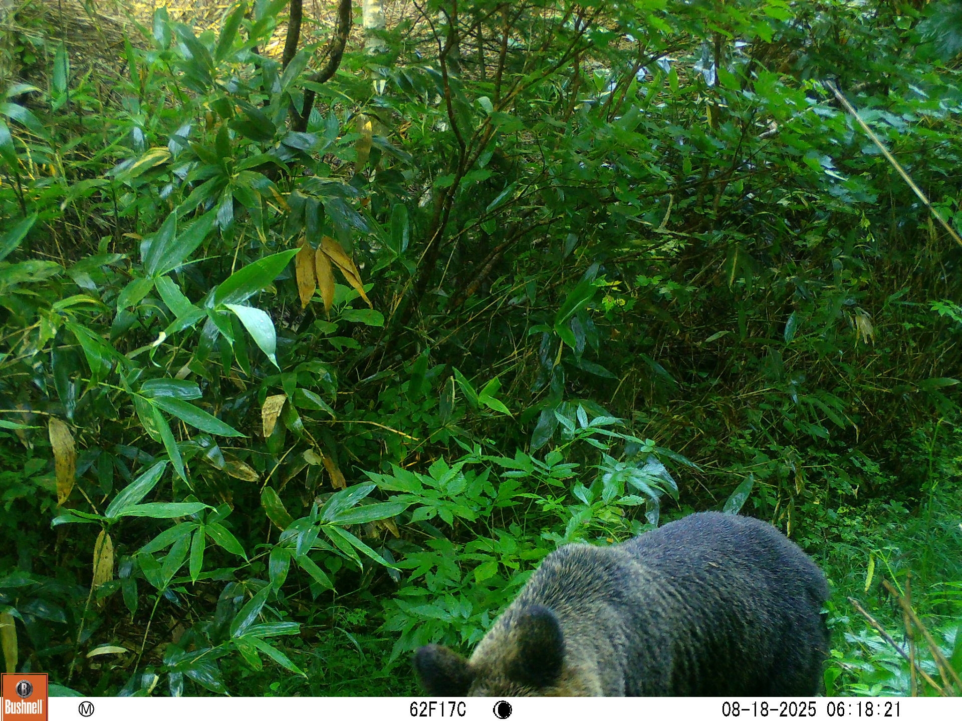 以前にも、原始ヶ原で撮影されたヒグマを紹介した日記を書いたことがありますが、これまでヒグマがトレイルカメラに写るのは夜のみで、1シーズンに1~2回記録される程度、令和5年、令和6年はヒグマの撮影は0枚だったのですが、今年は朝にも写っており、過去最多数の記録となりました。