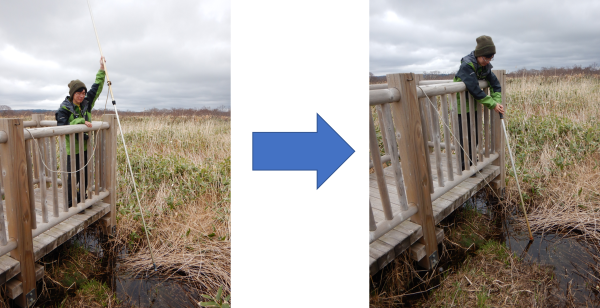 下サロベツ原野園地でヤチマナコの深さを体験してみよう!!