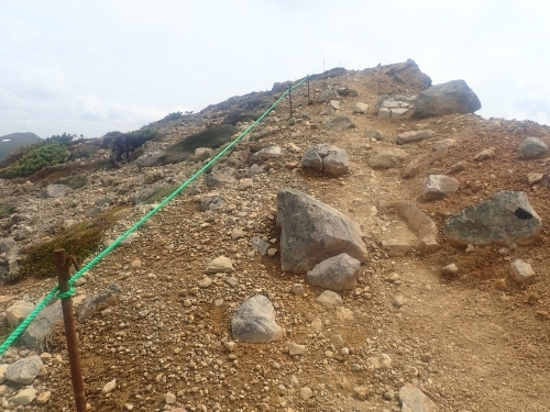 十勝岳に着いて看板補修をしてから、ロープ張りスタートです。精鋭部隊は適材適所に散らばりテキパキと臨機応変に作業を進めてくれます。