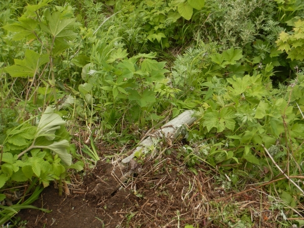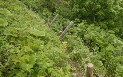レブンアツモリソウの生育地では盗掘や踏み荒らし防止のために木柵を設けている場所もありますが、強風や積雪によって壊れてしまうことが少なくありません。