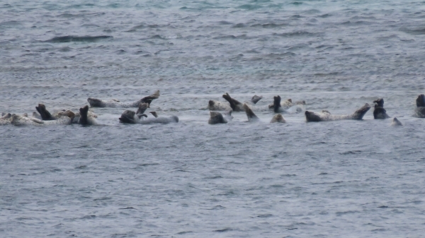 作業場所に着くと何やら海の方が騒がしく、声のする方を見てみるとアザラシたちが気持ちよさそうに寝転び、時折大きな声で鳴いていました。