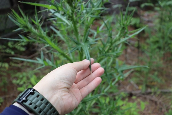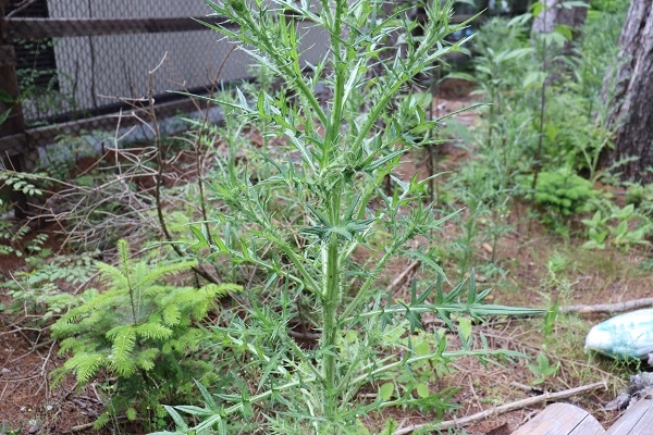 初めて見ても「これがアメリカオニアザミだ!」とわかるようなインパクトのあるトゲトゲしい見た目をしています。