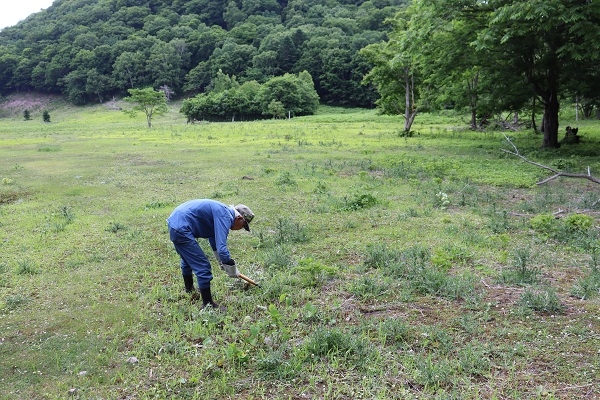 毎年パークボランティアの皆さんにご協力いただき、今よりもアメリカオニアザミの生育が広がらないよう、地道な活動を続けています。