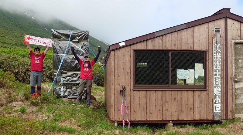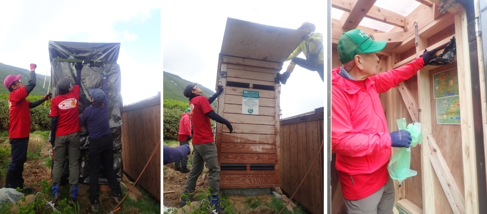 6月25日(日)、山のトイレを考える会、美瑛山岳会のみなさんの協力を得て、総勢13名で美瑛富士携帯トイレブースの冬囲い外しに行ってきました。
