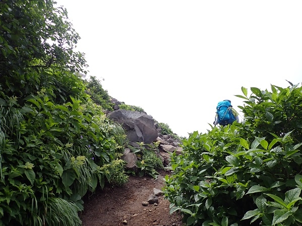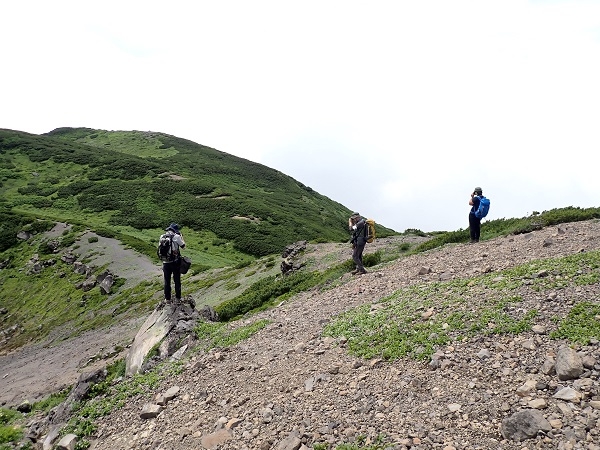 早朝5時半ごろに登山口を出発し、過去にコマクサが発見されている9合目付近のポイントを目指しました。