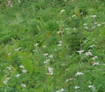 調査箇所ではエゾイブキトラノオのほかエゾカンゾウやエゾノコギリソウなどを確認することができ、ちょっとした場所の違いで植生が大きく変化していました。