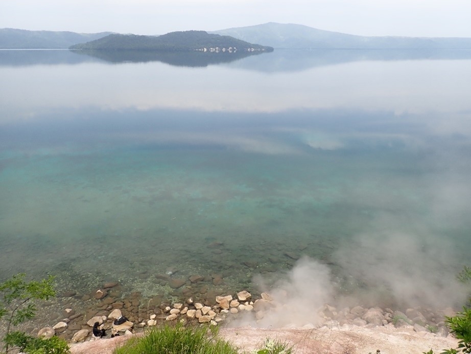 ・オヤコツ展望台から撮影した噴気と屈斜路湖です。湖面と映った空のグラデーションがお気に入りです。