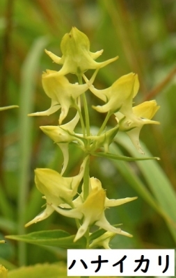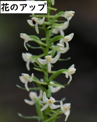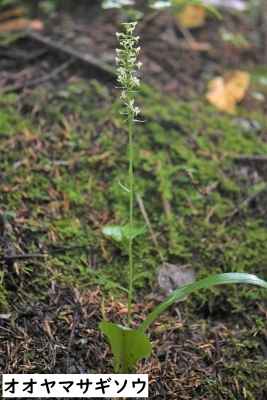 林内やササの下には,ランの仲間のオオヤマサギソウが咲いていました。鳥が羽ばたいているような独特な花の形をしています。