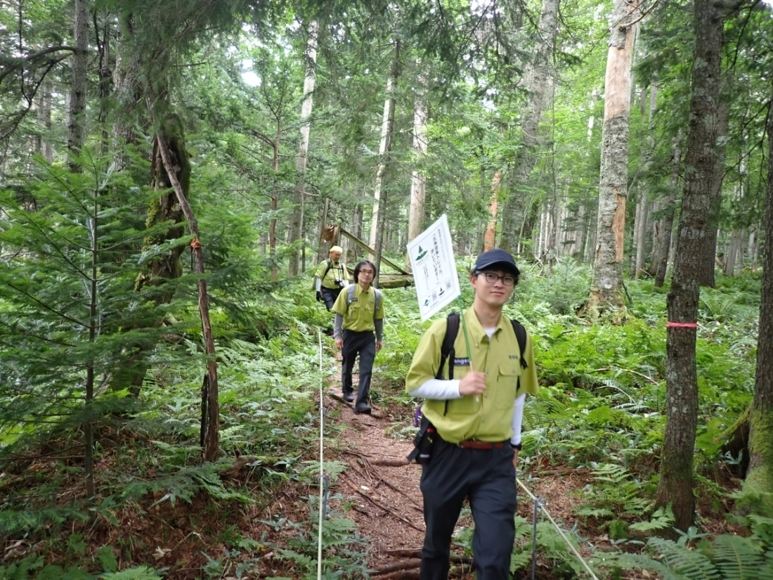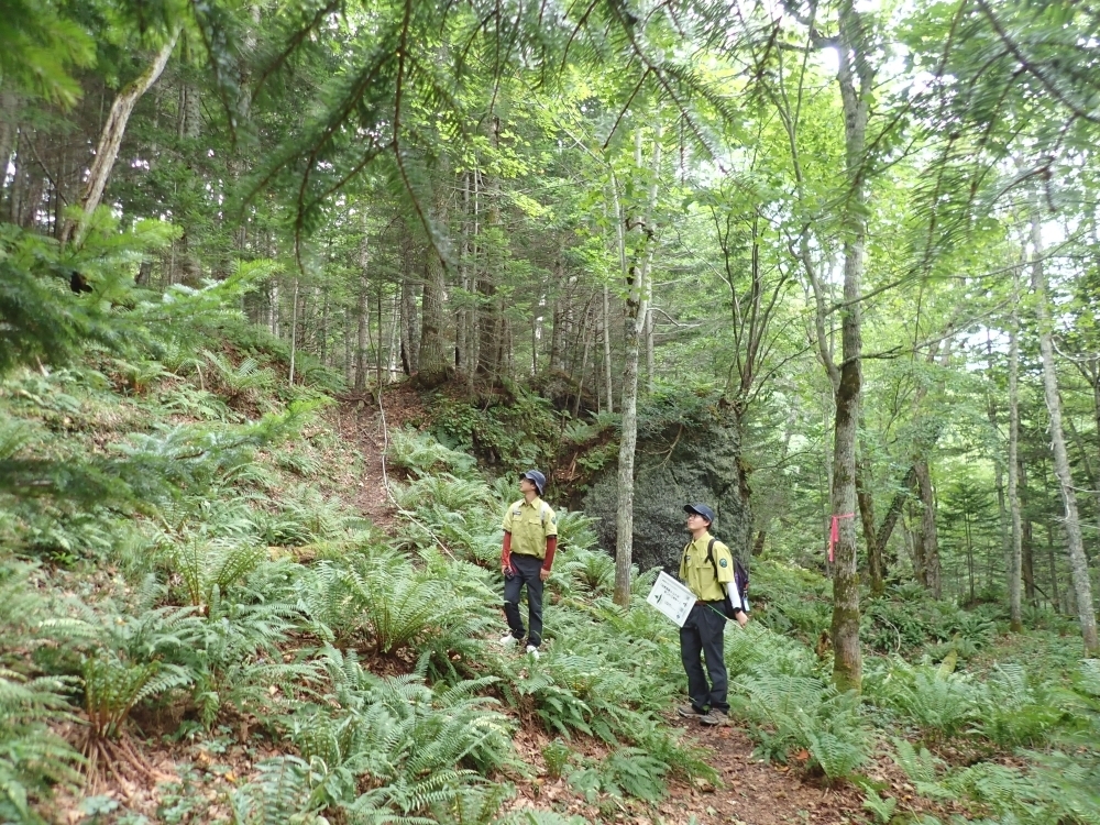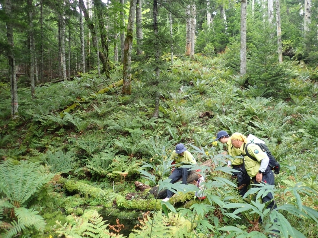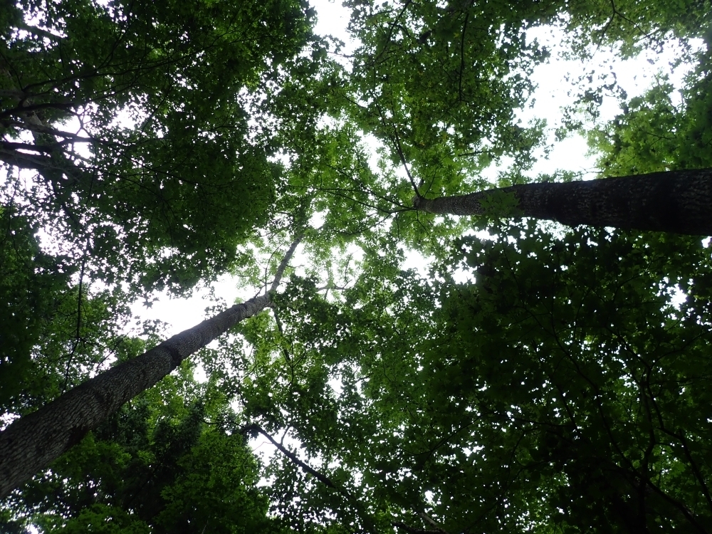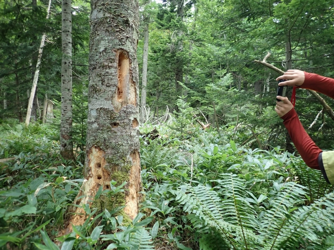 樹上ばかり見上げていたり、林床をキョロキョロしていたり、樹種や地形を眺めていたり、