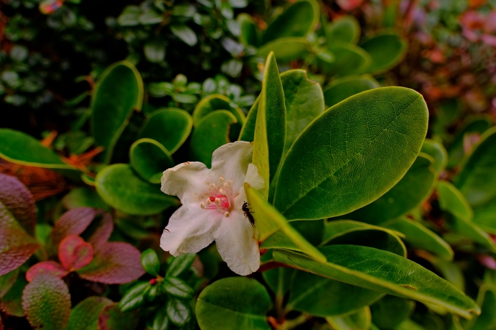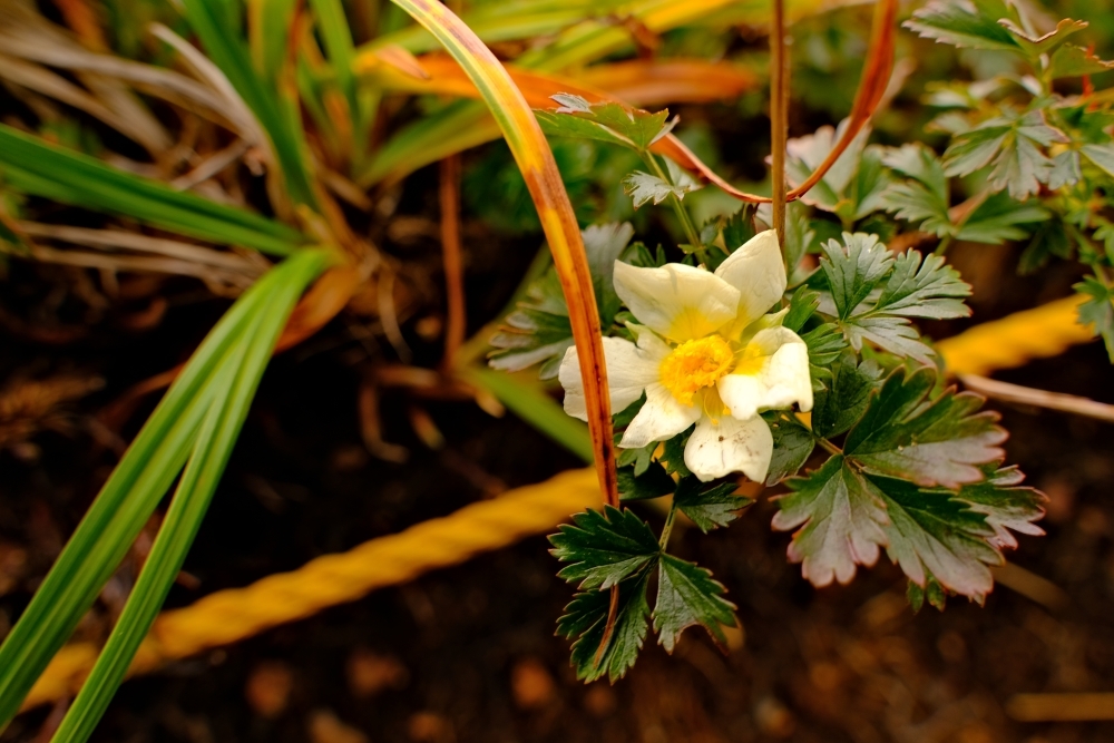 狂い咲きしている花の数はわずかかも知れませんが、周囲は既に紅葉している植物も多くあります。紅葉とのコントラストが際立つため、多く見つけることができました。