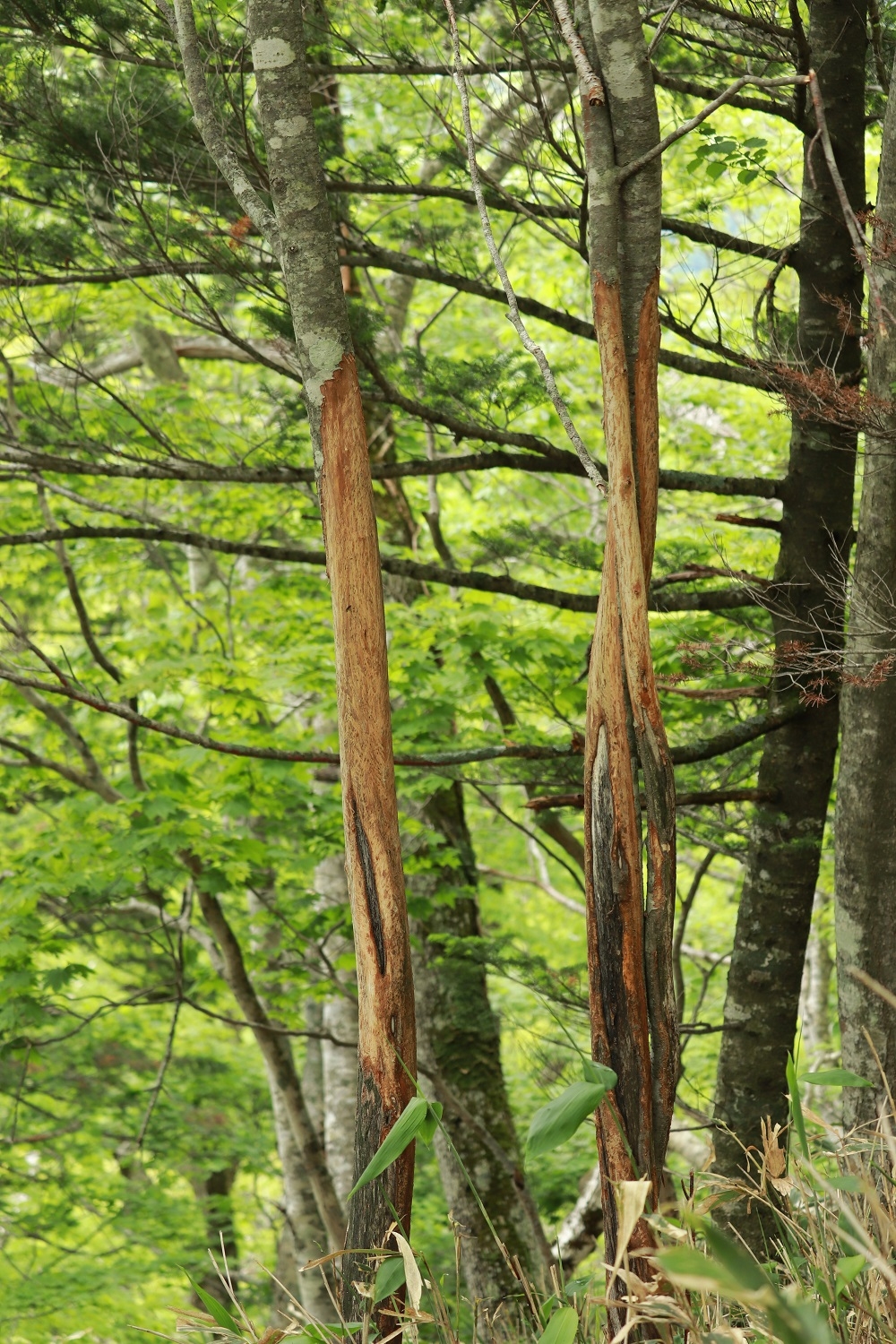 例えば木の樹皮はシカの冬場の食べ物のひとつですが、幹を一周食べられてしまうと、その木は枯れてしまいます。