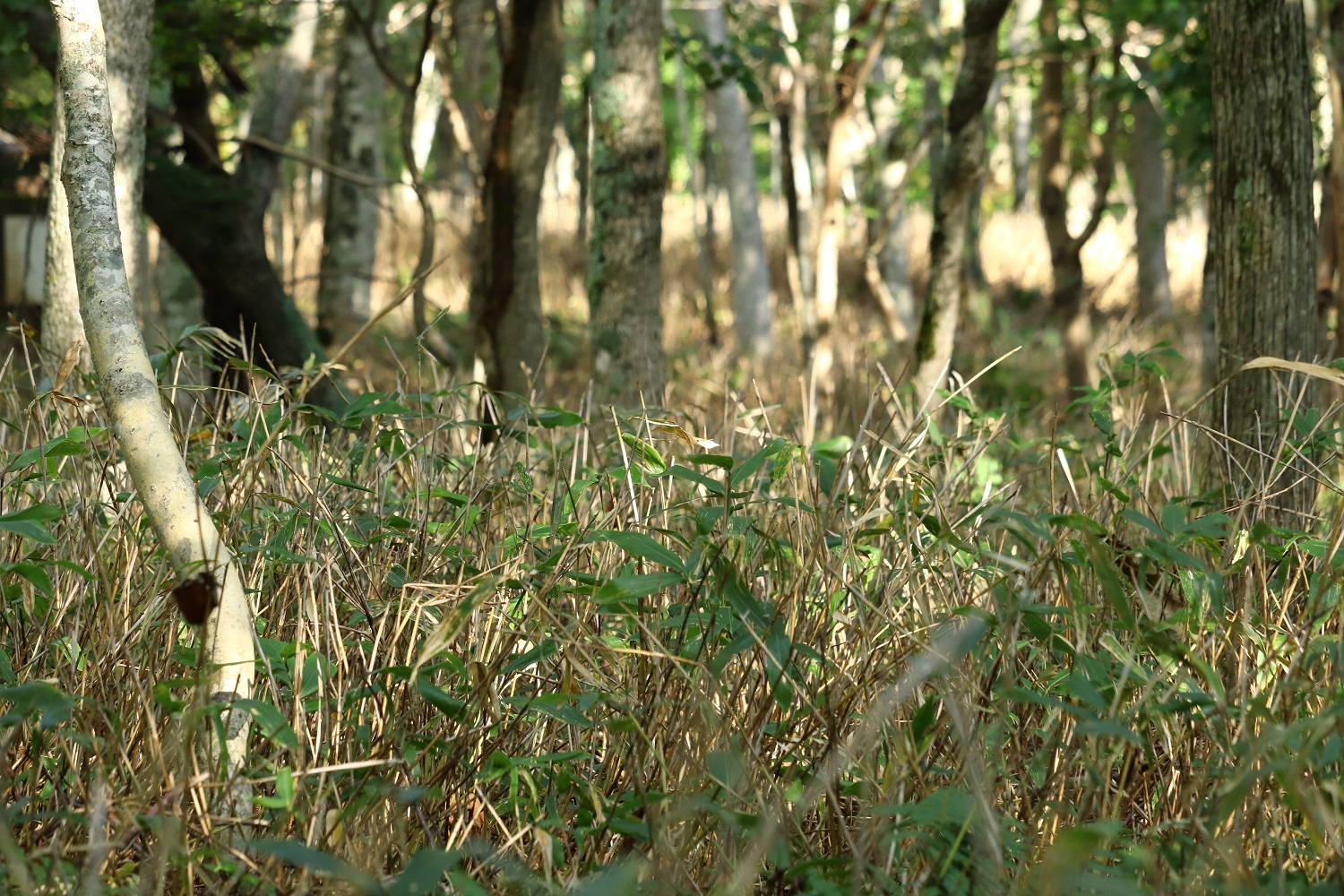 シカに先端の葉を食べられたササは茎がむき出しになって、つまようじがたくさん立っているみたいです。