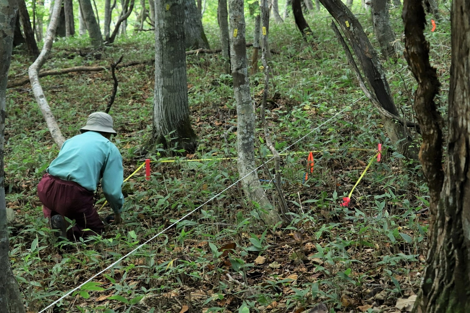 このような調査区が支笏湖周辺にいくつか設けられ、エゾシカが植生へ与える影響を分析することになります。