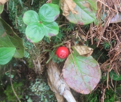 春に白い可愛らしい花をつけていたゴゼンタチバナも真っ赤な実をつけていました。花と見比べると全く違うような植物に感じてしまいます。