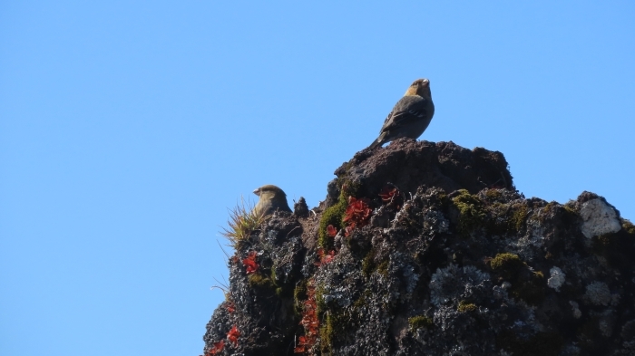 頂上付近にはギンザンマシコがいました。大雪山で繁殖しますが渡りの途中なのか利尻島でも見ることができました。