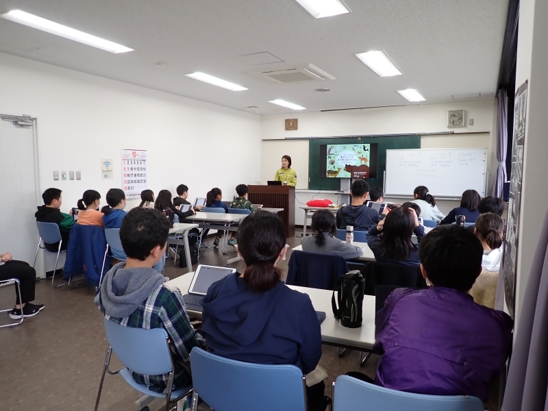 あらゆる豊かさの象徴とされるヒグマを毛嫌いするのではなく、ヒグマを正しく知って、正しく恐れ、正しく対処しよう、をテーマにヒグマに関するクイズや生態、ヒグマがどうして増えているのか、どうして街に下りてくるのか、そこで私たちにできる対策は何か、をお話しました。