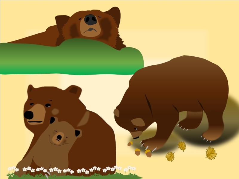 もしかしたら、まったりとお昼寝をしてたり、子グマが母グマに甘えていたり、ドングリを探すのに真剣かも・・・。