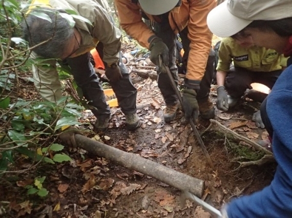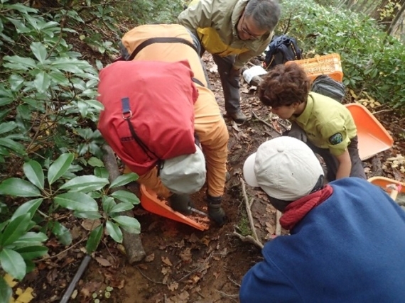 2020年秋の大雨によって登山道が壊れたことがきっかけで始まったこのイベントも今回で3回目。今回も「近自然工法」を用いて整備を行いました。