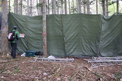 植生保護柵や保護ネットを用い、シカの食害を防ぐ