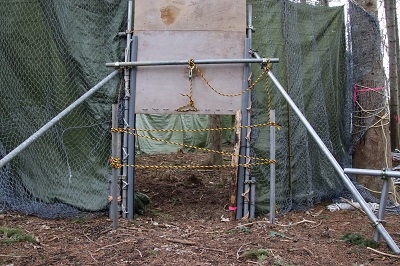 斜面などの遮蔽物のこと。万が一、バックストップのない場所で発砲し、弾が外れたりシカの体を貫通したりした場合、状況を目視できない方向に弾が飛んでしまう可能性があるためとても危険。