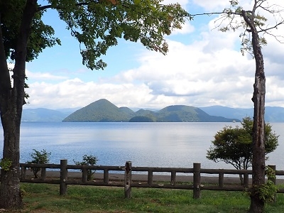 (有珠山噴火記念公園から見た洞爺湖中島(2023年8月撮影))