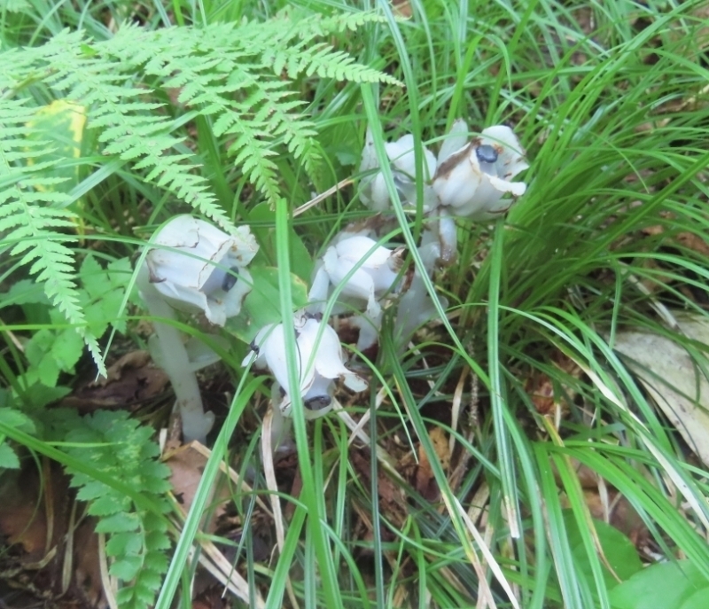 姫沼からポン山に向かう通称「ポン山・姫沼コース」ではギンリョウソウを見ることができました。葉緑体を持たないため真っ白で、菌類から栄養を得て暮らしています。大学生の頃、宮城県での実習で見たことがあり、遠く離れた利尻の地で再会するとは、何か不思議な巡り合わせを感じました。